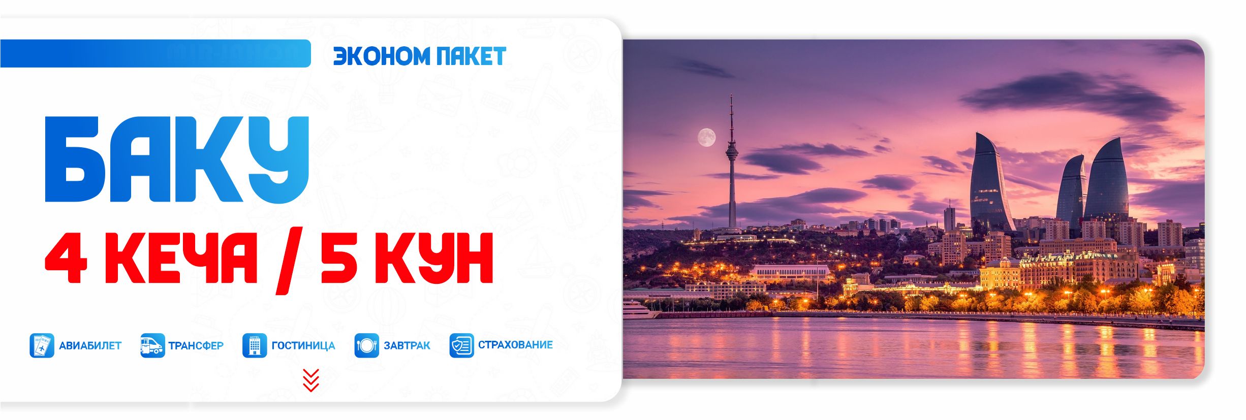 БАКУ - 4 КЕЧА/5 КУН (ЭКОНОМ ПАКЕТ)